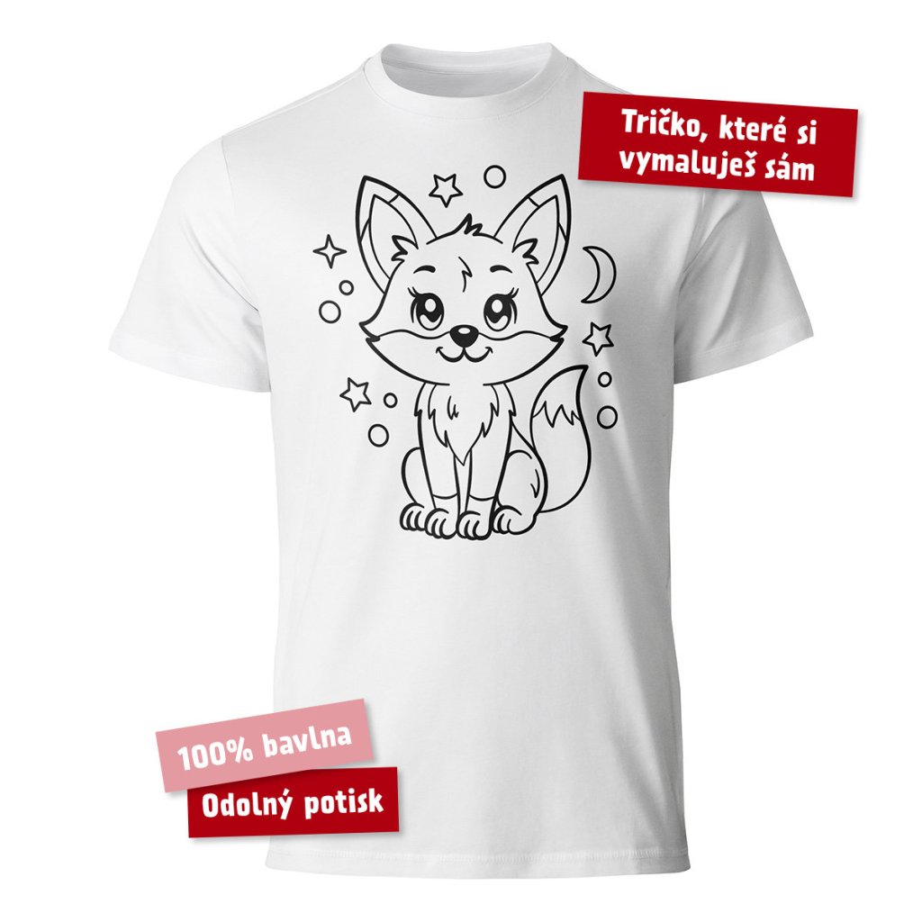 Originální dětské tričko s motivem lišky k vybarvení. Kreativní zábava pro děti a jedinečný módní doplněk. Ideální volba pro malé umělce a milovníky pohádek. Zabaví děti na dlouhé hodiny a vytvoří krásný originální kousek.