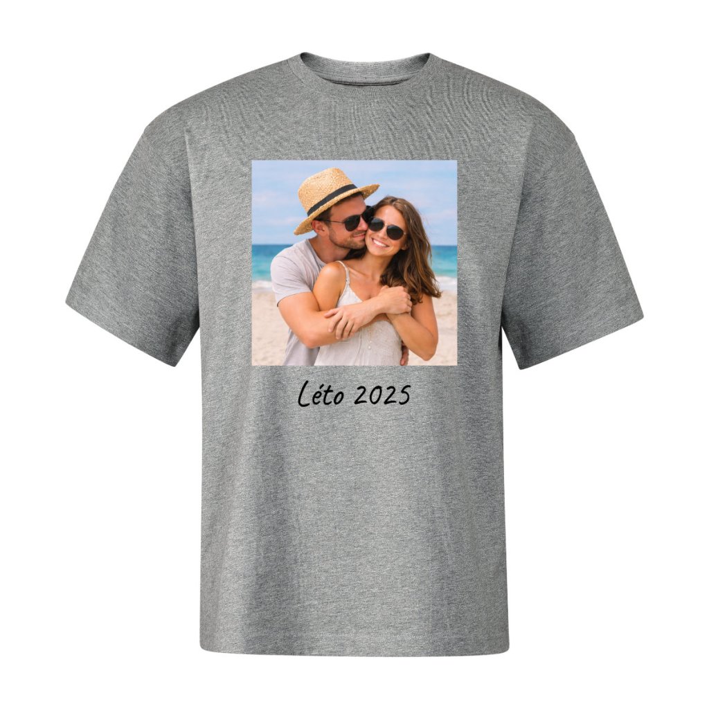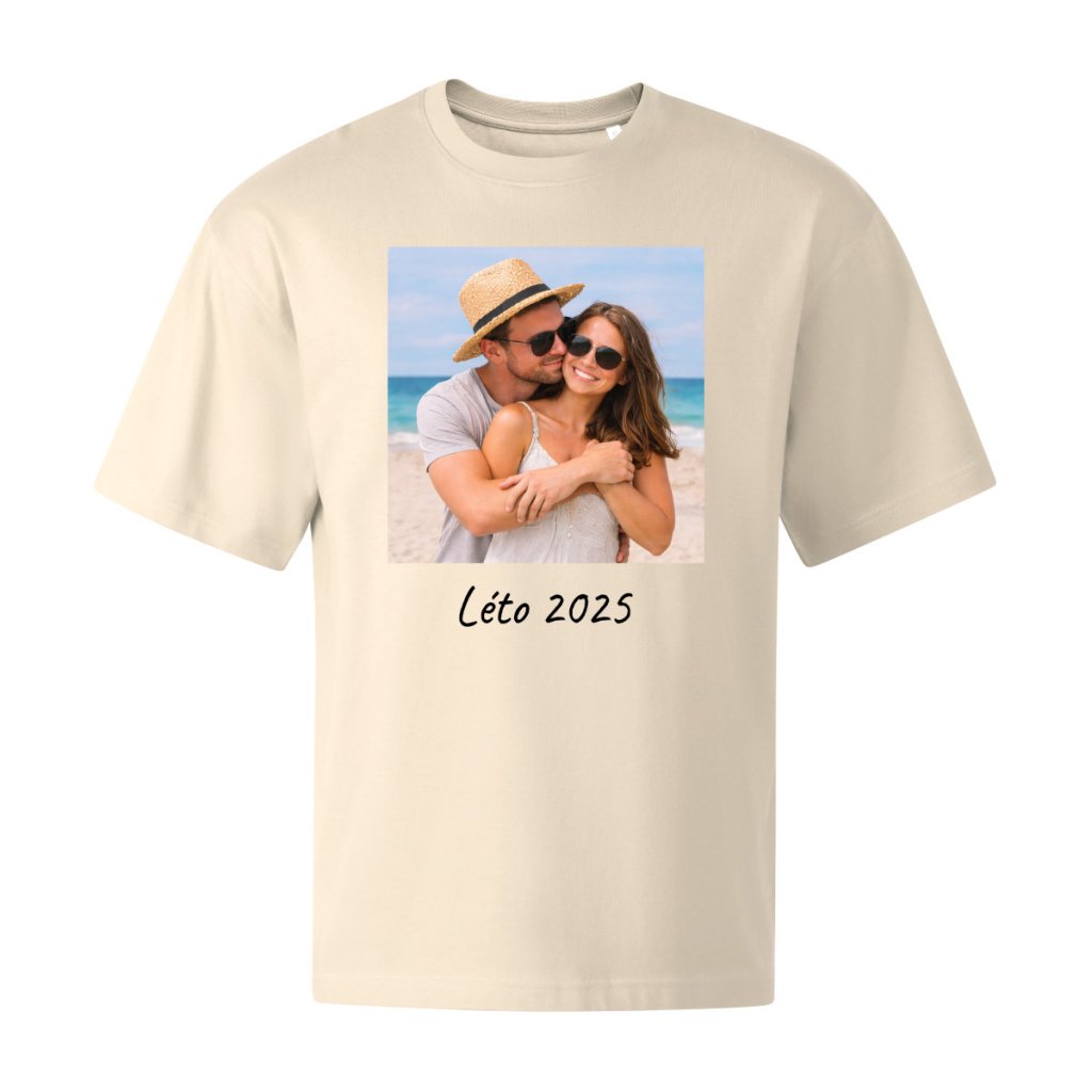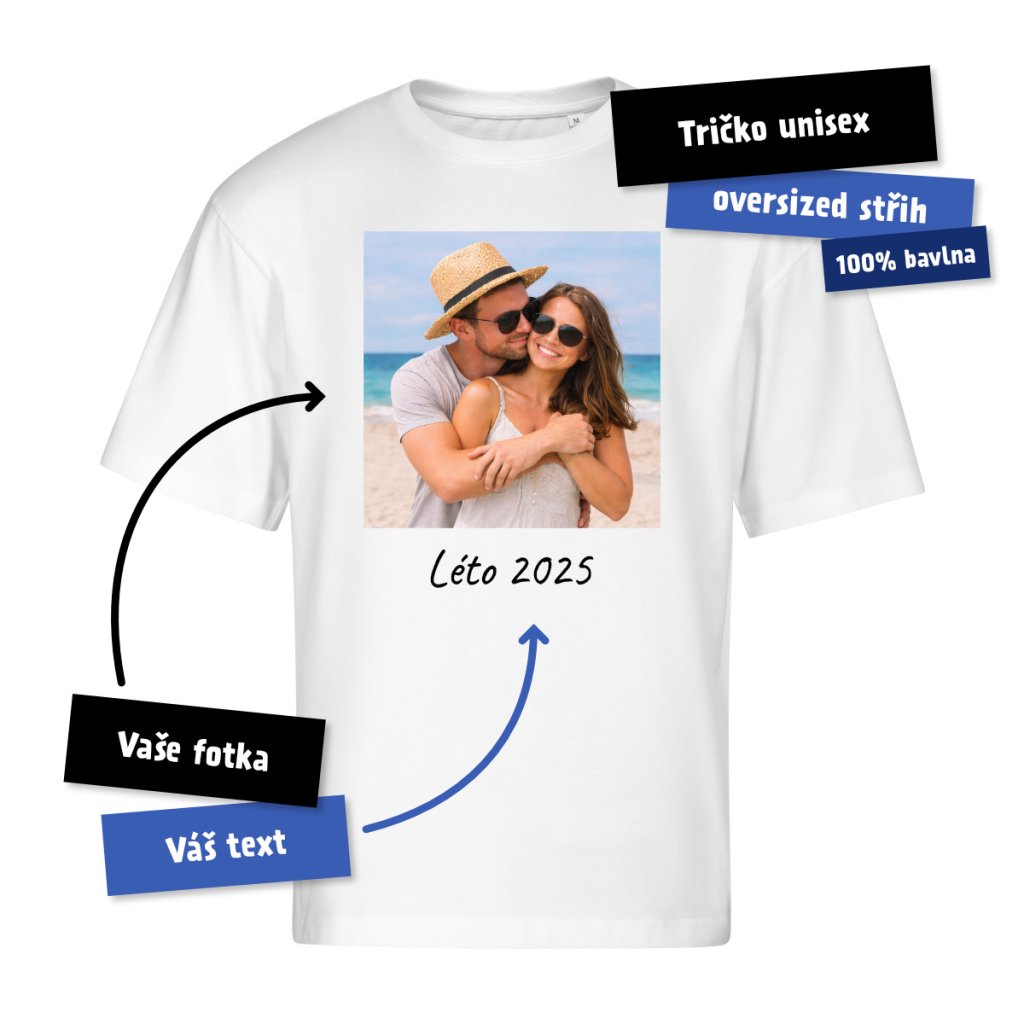 Nahrajte jednu vlastní fotku, přidejte volitelný text a my vám vytvoříme originální tričko přesně na míru. Před výrobou vám vždy pošleme náhled ke schválení a teprve poté tričko potiskneme na kvalitní unisex tričko s moderním oversized střihem.