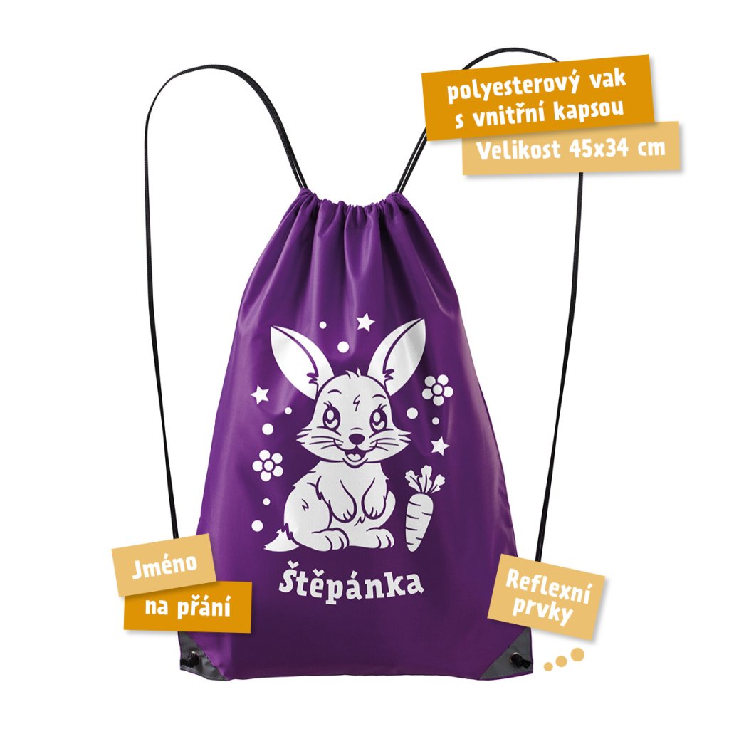 Lehký a odolný polyesterový vak s motivem a jménem na přání – ideální do školky, školy, na tréninky i výlety. Praktická vnitřní kapsa, reflexní prvky a kvalitní potisk z něj dělají skvělý osobní dárek, který si děti zamilují.