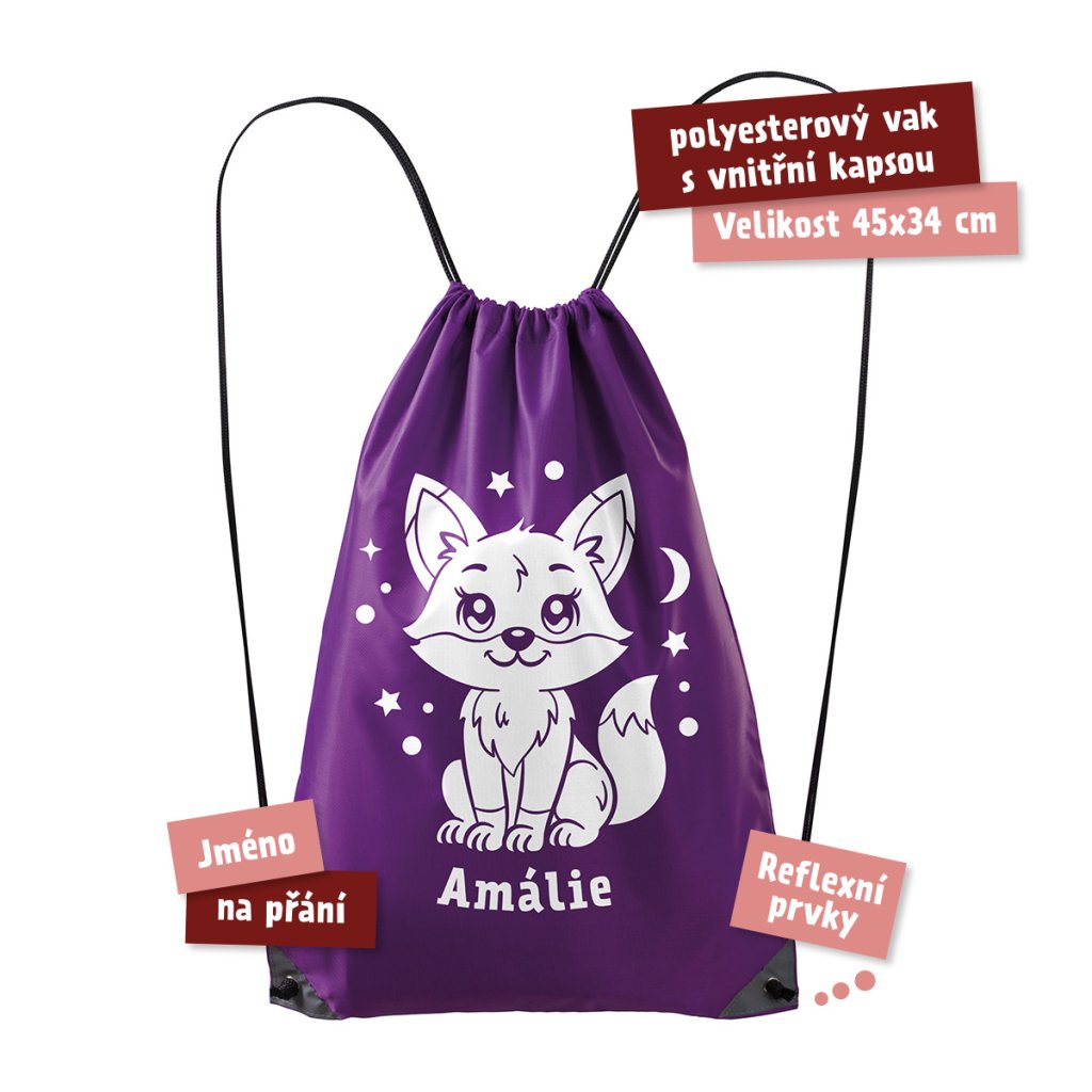 Lehký a odolný polyesterový vak s motivem a jménem na přání – ideální do školky, školy, na tréninky i výlety. Praktická vnitřní kapsa, reflexní prvky a kvalitní potisk z něj dělají skvělý osobní dárek, který si děti zamilují.