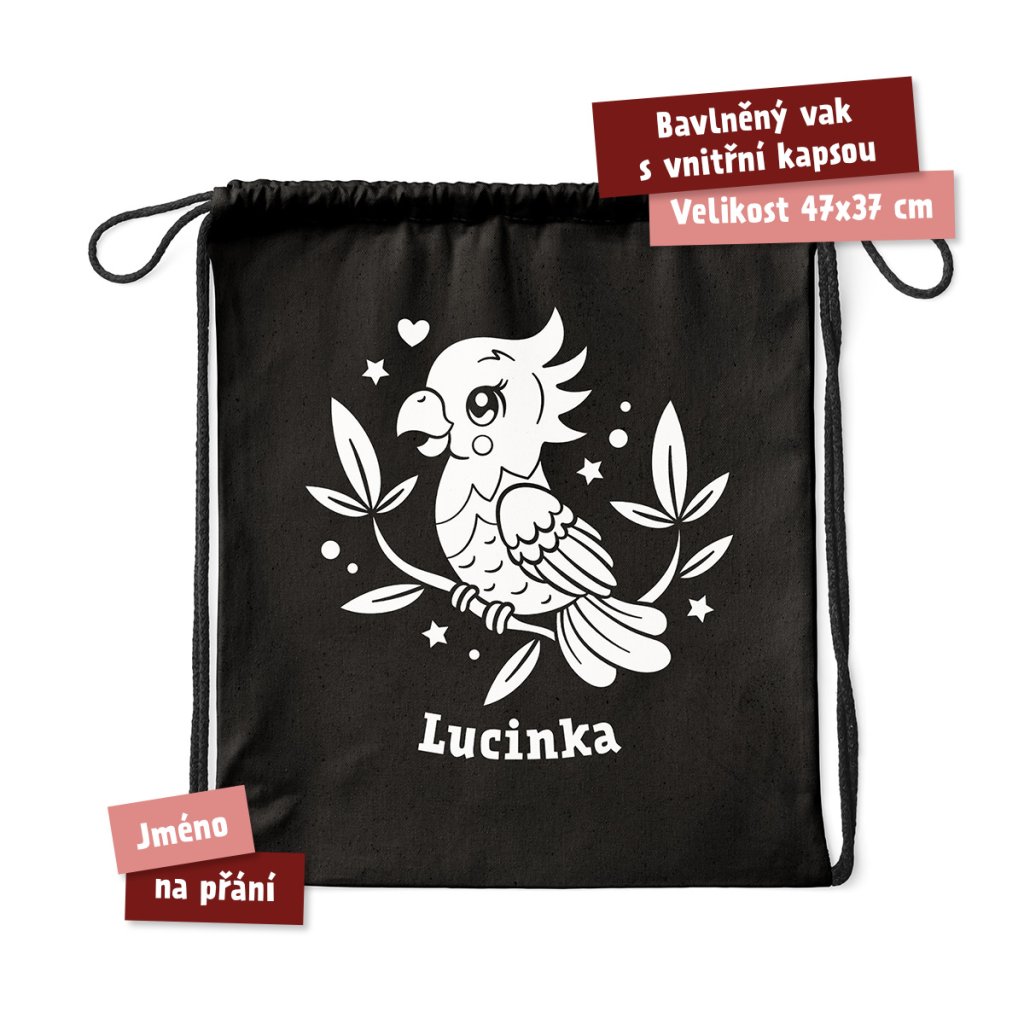 Praktický bavlněný vak se jménem na přání – ideální do školky, školy i na výlety. Kvalitní potisk, odolné provedení a dostatek místa na vše důležité. Skvělý osobní dárek, který si děti zamilují.