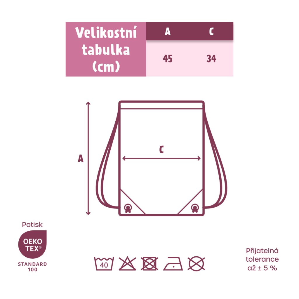 - Snadná údržba – vak lze snadno otřít nebo vyprat, potisk je navržen pro běžné použití.